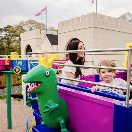 The Queen’s Flying Coach Ride takes you on a journey fit for royalty as you tour the Peppa Pig kingdom from above. This wonderful, themed monorail is the largest ride at Peppa Pig World, winding its way over paths, gardens, water and even through the Queen’s castle. This ride is sure to delight the whole family.