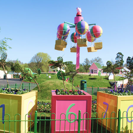 Join Peppa Pig on a magical hot air balloon ride as you get slowly lifted into the air to see an incredible view over Peppa Pig World. The ride slowly rotates to give you sights from every angle - what can you spot from all the way up there?