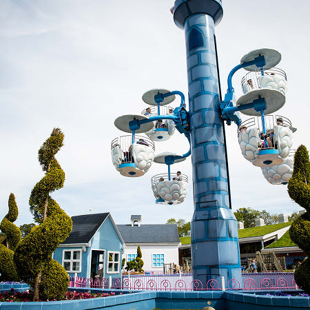 This is an exciting ride where you are lifted up, up, up into the skies by fluffy white clouds. Enjoy the sights from above in peace or if you’re feeling daring, turn the wheel to make your cloud spin! Maybe you’ll be able to spot Peppa and George from the top.